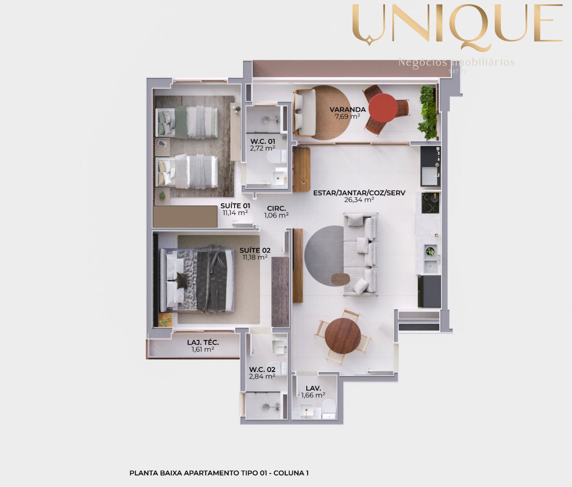 Plantas com 2 suítes