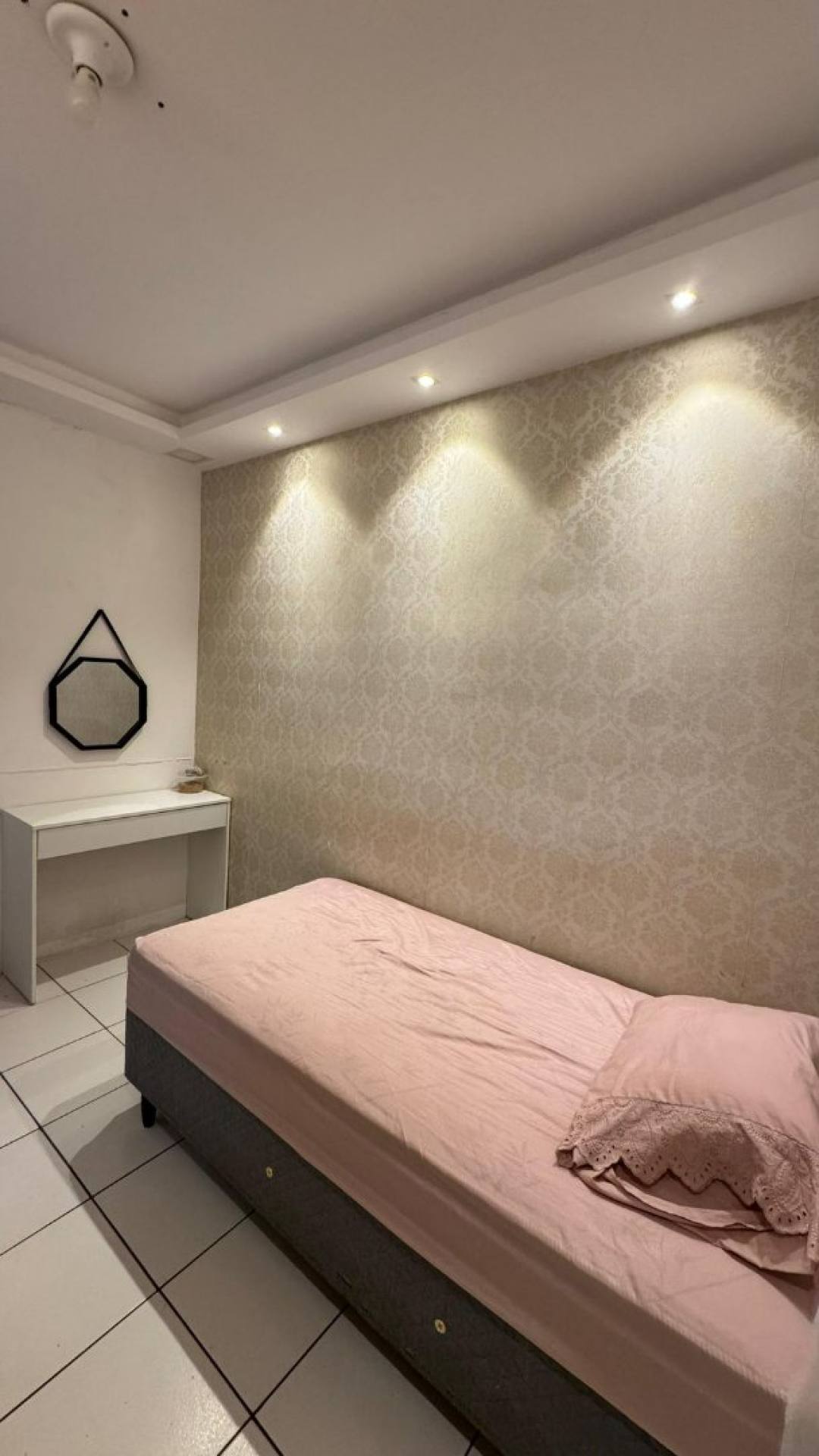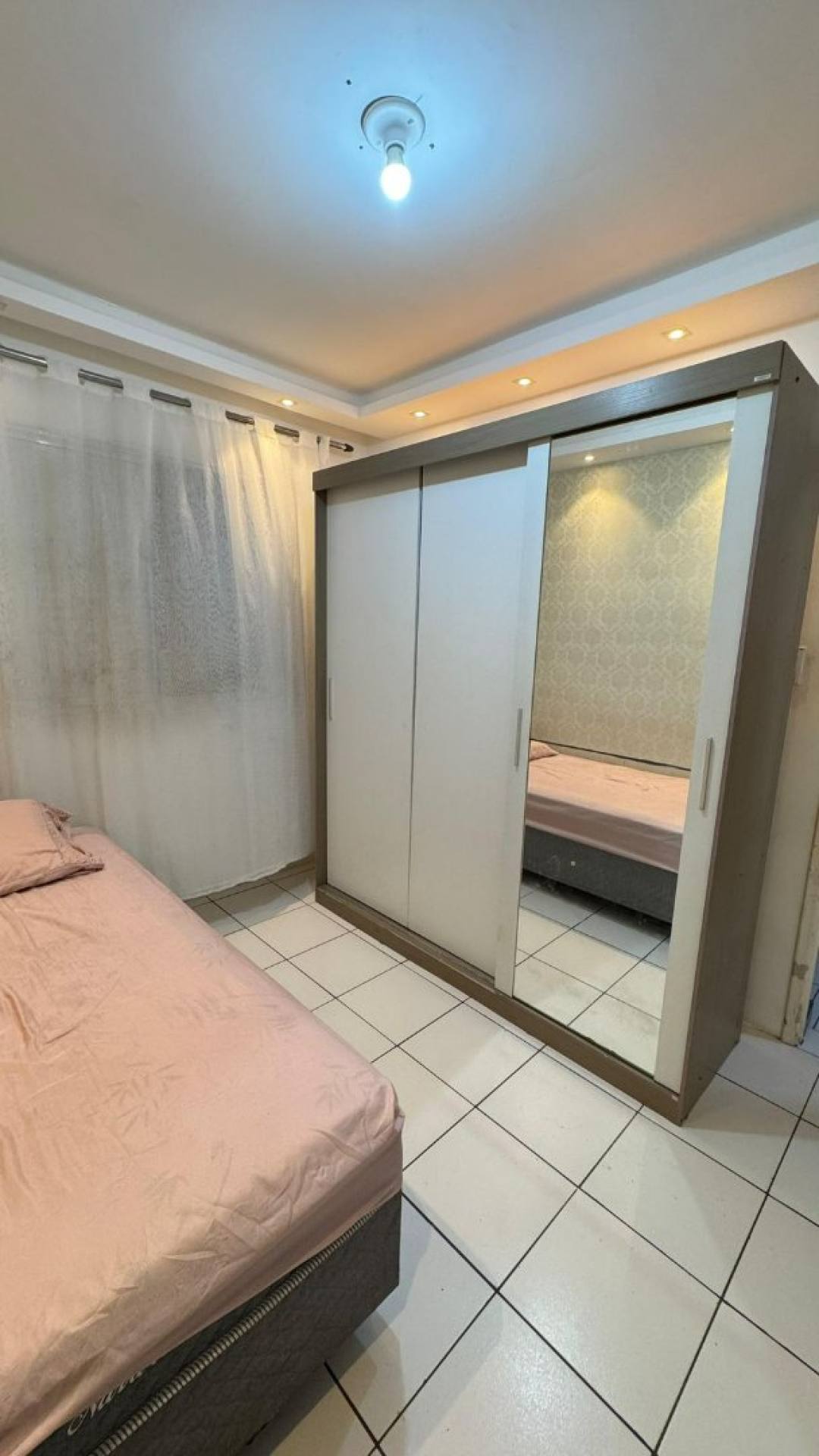 • Ficam no apartamento: espelho da sala e guarda-roupa com escrivaninha embutida