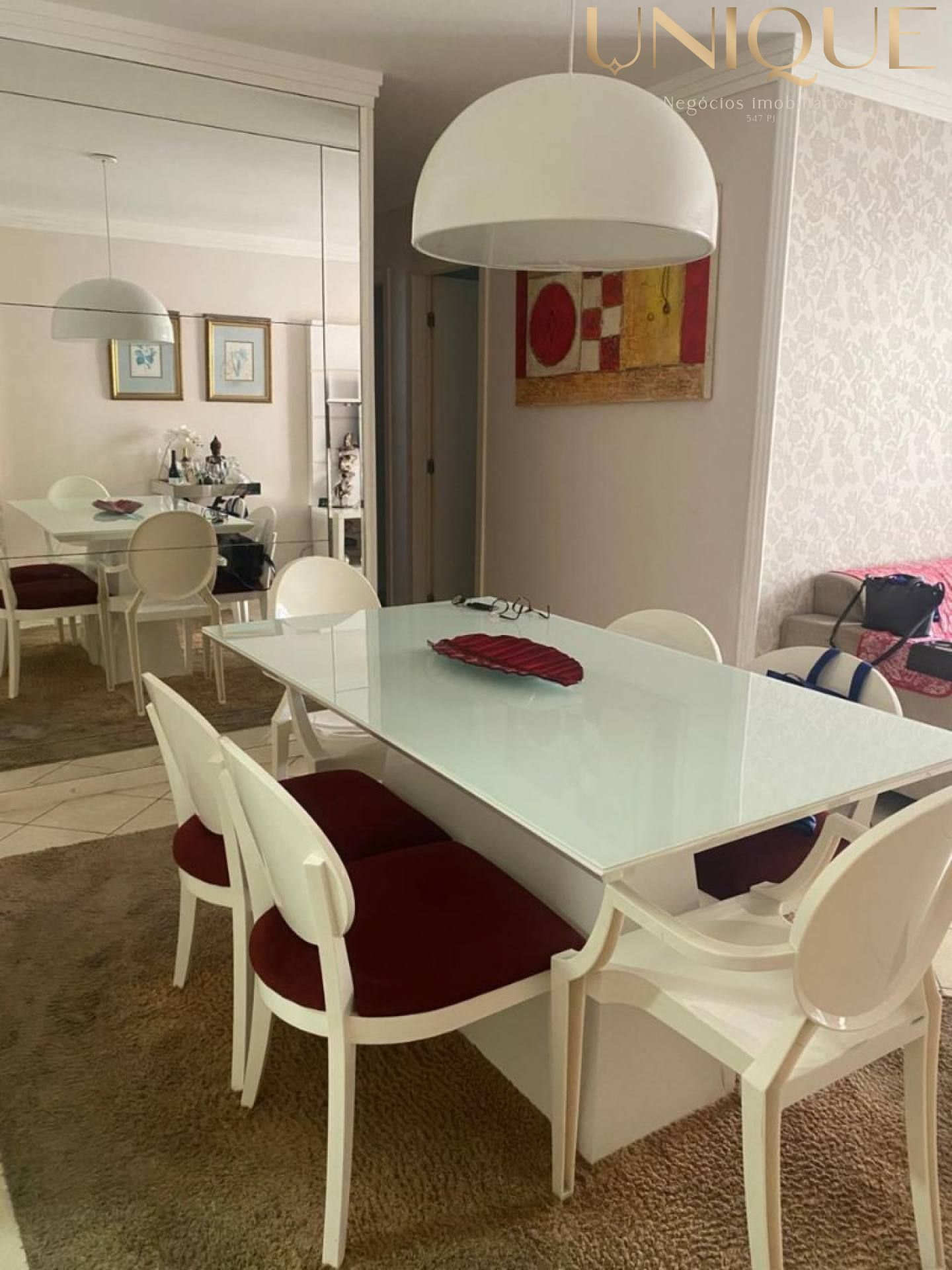 • Layout: Varanda, sala de estar e jantar, cozinha, área de serviço, WC social e dependência completa de empregada (DCE).