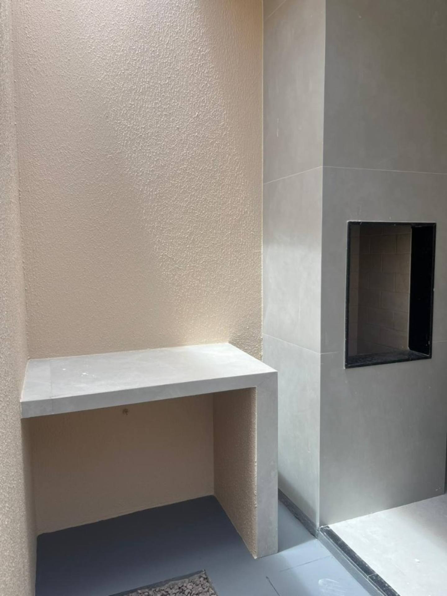 *Área gourmet com churrasqueira e pia em mármore com balção;