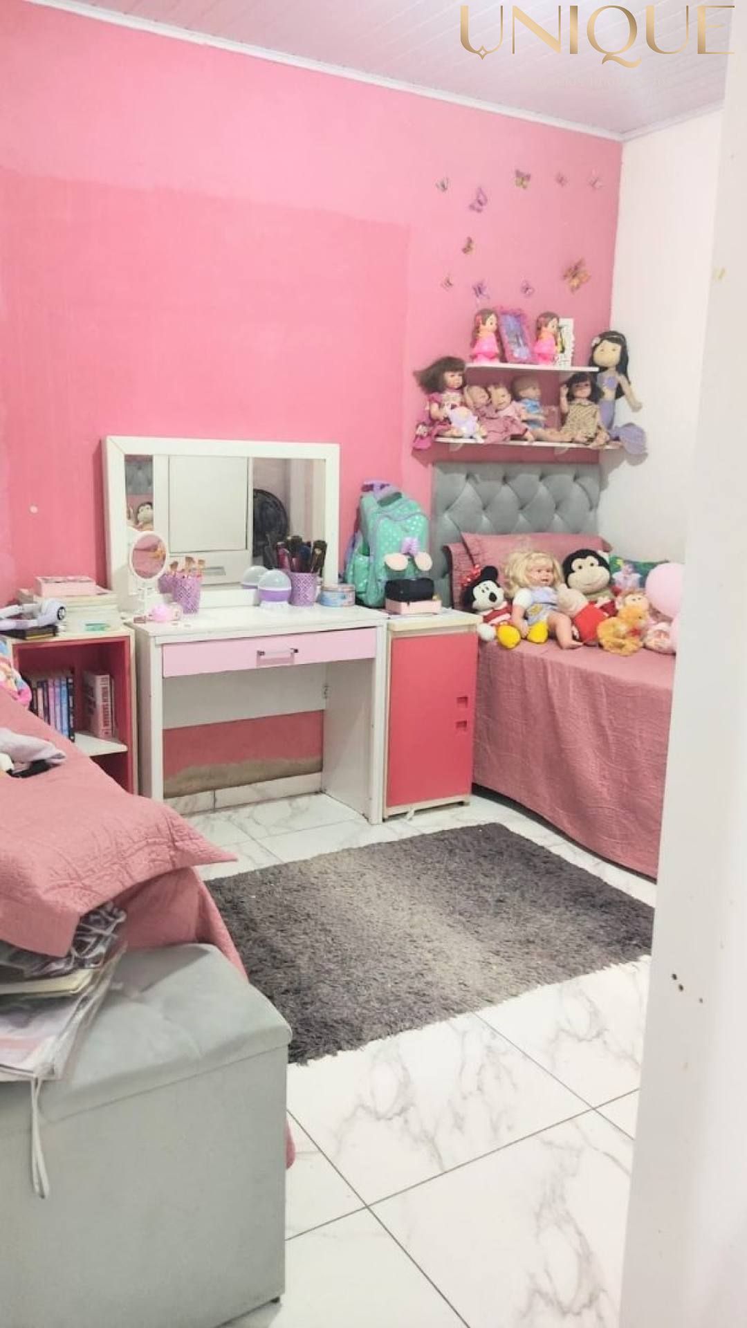 – 3 quartos (1 suíte) – Sala integrada com a cozinha americana e balcão – Área de serviço – Banheiro social – Área de ventilação – Quintal – 2 Vagas de garagem – Itens extras: Posição solar Sudeste.